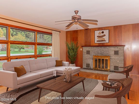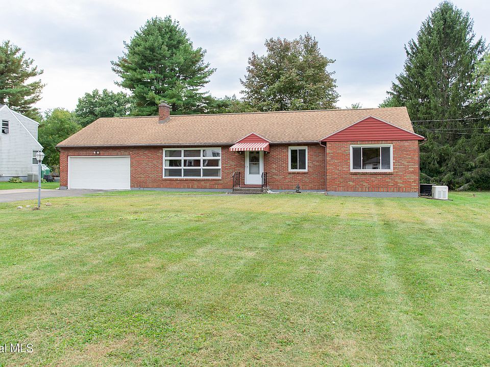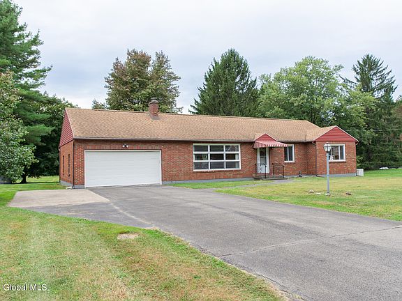 Don't miss this! There is over an acre of land! Solid brick ranch with beautiful hardwood floors is on a quiet street in a super convenient location. A mid-century modern mahogany wall flanks the fireplace in the large living room. The heated sunroom (or family room or office) overlooks the private, cleared, flat backyard. There is tons of extra off-street parking (or storage) with the extended driveway, an attached 2-car garage, AND a detached 3-car garage. Just off Rt 146 and walking distance to Garnsey Park
