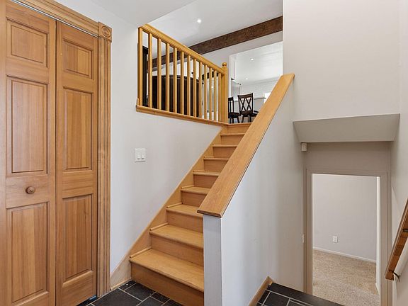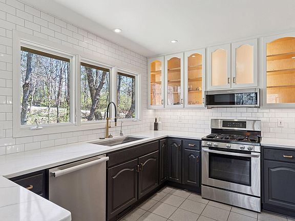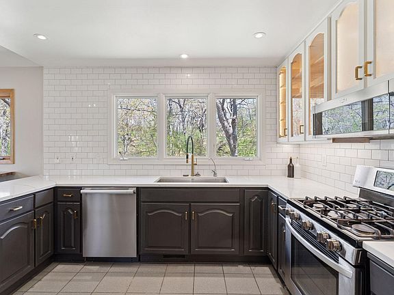 Welcome to this tastefully updated home set on a stunning lot that offers the perfect blend of privacy and open space. Inside, you’ll find character and modern touches throughout, including hardwood floors, vaulted ceilings, a stone hearth with wood beams and mantle, and updated kitchen and bathrooms. The kitchen boasts enameled cabinetry, a large picture window, stainless steel appliances, a gas range, and quartz countertops. The adjoining dining room opens to a spacious deck with wooded views, while the main-floor primary suite offers a serene retreat with an updated private bath, a sitting area or office nook, and a walk-in closet. The finished lower level includes a cozy family room, two additional bedrooms, a 3/4 bath, and a versatile recreational area. Move-in ready and waiting for you to enjoy!