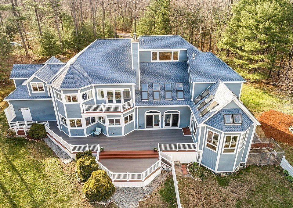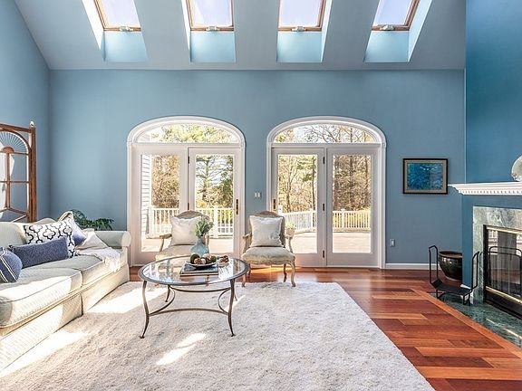 Pristine four bedroom custom built home set high on the beautiful and private knoll atop Lookout Point. Immaculate throughout, this home has a thoughtfully designed floor plan with high ceiling living room with fireplace, light and airy sun room with wet bar and cozy family room. The kitchen is sunny and spacious and overlooks the oversized deck and grounds and includes center island, walk in pantry and stainless steel appliances. The spacious master suite includes a sitting area, fireplace, balcony, spa bath and walk in closet. Three more spacious bedrooms on second floor with custom closets and separate bath. Finished third floor including half bath with bonus room ideal for office, playroom or guest room. Fully equipped theater with high end video and audiophile grade equipment and seating, all to remain. Perfect for movies and watching sports. Enjoy the private natural setting and the incredible convenience of being so close to schools, shops, commuter rail and routes.