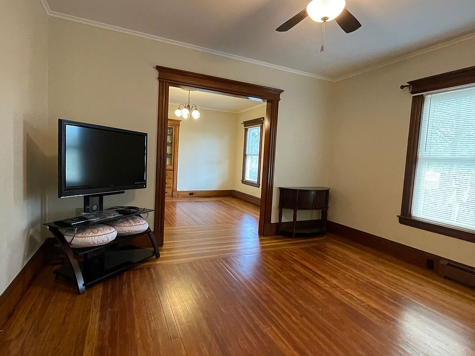 High ceilingsIn unit laundryLarge yardHardwood flooringNice wooden cabinetsSpacious homeNew paint