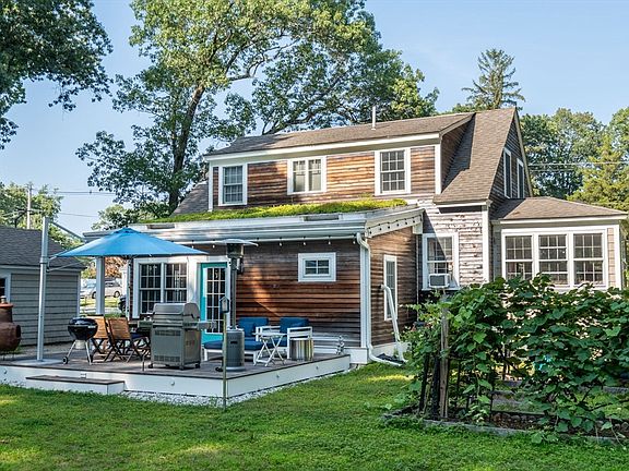 This Cape-style gem blends modern comfort with eco-conscious design on a lush, landscaped lot. Enjoy year-round efficiency with >90% foam insulation and a living roof bursting with succulents. Entertain on the expansive IPE deck or the built-in sport court. The remodeled gourmet kitchen is a chef’s dream—Stainless 5-burner gas stove with double ovens and vented hood, granite counters, Stainless LG refrigerator with instaview, and island offering casual dining seating—all flowing to a dining room with built-ins and custom hardwood flooring. Front to back Living/Family Room features hardwood flooring and french door to home office or glassed in porch. Custom windows fill the home with light, while remodeled baths feature spa-like walk-in rain showers. A spacious mudroom w/radiant heat keeps life organized. Finished with striking Shou Sugi Ban no maintenance siding and a 1-car garage, all moments from Rte 3, 495, and commuter rail. Three dual mini splits in bdrms for heat & AC.