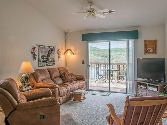 WOW! Awesome year-round unobstructed TABLE ROCK LAKE VIEW from this top floor condo with vaulted ceilings. Pristine condition and fully furnished! Wood floors in entry and through kitchen. Imagine enjoying your morning coffee on this 21 ft LAKE VIEW deck. Sellers have owned the condo for over 12 years and enjoyed as a second home. Never in nightly rental, but is an option for another owner. CABLE included in HOA fee. Closest resort to Silver Dollar City on Indian Pt. Amenities include pool, hot tub, tennis court, playground, nature trails to lake, fish & swim from extensive shoreline. Pet friendly!
