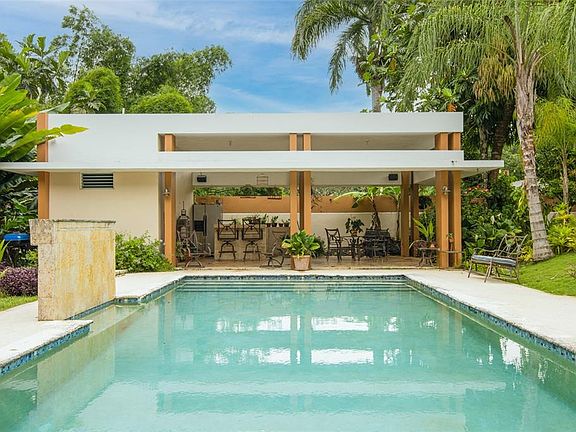 Single-story home with spacious layout and great potential. Set in a quiet community surrounded by greenery, this 4-bedroom, 3.5-bath property offers comfortable living with large open areas connecting to the garden and pool. The outdoor area features a covered terrace with bar and full bath, ideal for everyday enjoyment or entertaining. The primary suite includes a walk-in closet, jacuzzi, and an open-style shower with a natural, outdoor feel. There’s also a versatile extra room with its own bath that can serve as an office, guest room, or storage. Equipped for generator connection. While the home needs updates and cosmetic work, it offers solid construction, privacy, and an excellent location just minutes from Guaynabo and San Juan — perfect for those looking to personalize a spacious property in a peaceful setting. Shown by appointment.