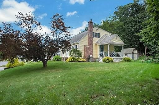 This lovingly maintained cape style home is filled with character and charm! Location is best of both worlds - Sought after cul de sac neighborhood, yet 1.5 miles from the hustle and bustle of downtown Hudson's many popular restaurants and stores, 3 miles from Highland Commons expansive and growing shopping plaza, and close to routes 85 and 495. Flowing floor plan includes spacious, sunny living room with beautiful wood burning fireplace. At the center of the home is an updated kitchen with granite countertops, abundance of cabinetry, stainless appliances. The sun drenched eating area is delightful, making this a great place to gather. Four spacious bedrooms and two baths. Great curb appeal and nicely landscaped, the covered porch right off of the kitchen is a relaxing outdoor space. Gleaming hardwood floors; Central Air; Private yard with storage shed; Clean walk out basement with one-car garage access; Desirable school district. A great opportunity at this price point.