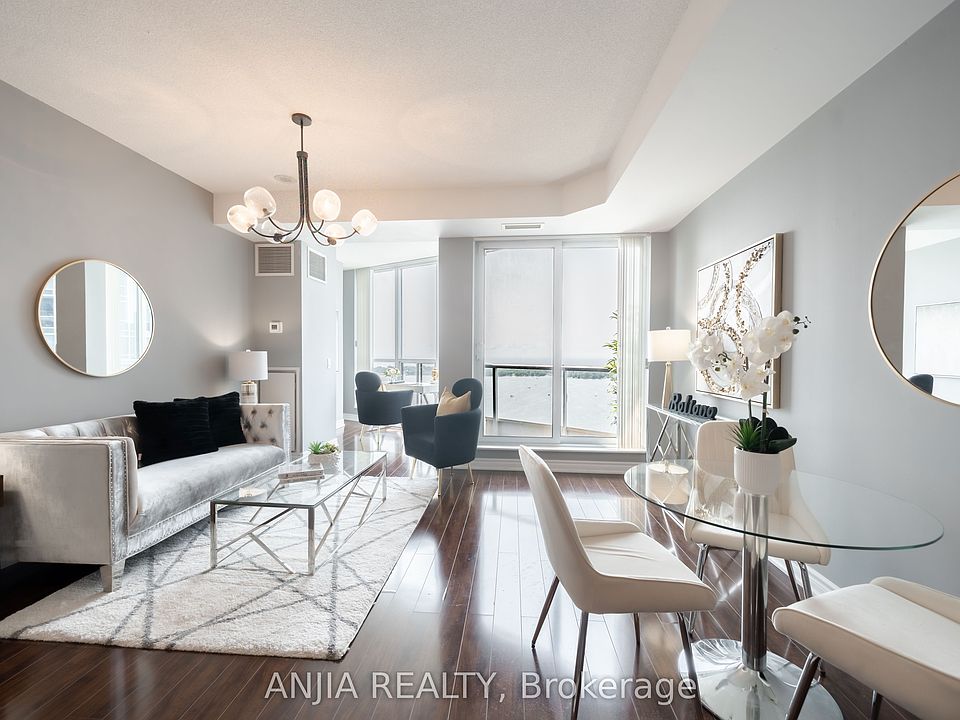 A Rare Waterfront Retreat in the Heart of Toronto! Welcome to this high-floor 1 Bedroom + Solarium/Den at Waterclub I, offering ~700 sq ft of functional living space and floor-to-ceiling windows with panoramic Lake Ontario views. Bright open-concept living/dining with a modern kitchen featuring granite counters, breakfast bar, and coffered ceilings. Updated in 2022 with new flooring, fresh paint, and a new heat pump for worry-free comfort.Wake up to sunlit mornings and unwind with sunset wine from your private balcony overlooking the water. The versatile den is perfect for a home office or reading nook with a view. Includes 1 owned parking space.Steps to Union Station, PATH, Scotiabank Arena, Harbourfront dining, and waterfront trails. Resort-style amenities include indoor/outdoor pools, fitness centre, sauna, party room, guest suites, and 24-hr concierge. Professionally managed with an exceptional building team.