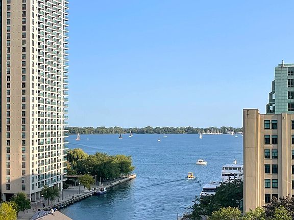 Welcome to 8 York Street - a beautiful, bright, south-facing 1 + solarium/den suite offering serene lake and city views from your private balcony. Nestled in one of Torontos most vibrant waterfront communities, this move-in-ready home blends designer upgrades with everyday comfort. Featuring ~692 sq. ft. of open-concept living, its thoughtfully designed to maximize space and natural light, offering floor-to-ceiling windows and a solarium-style den ideal for a home office. The suite features upgrades throughout, including granite countertops, stainless-steel appliances, and modern lighting in the kitchen, complemented by elegant touches such as a marble-tiled foyer and bathroom, custom mouldings, and premium laminate flooring.Residents enjoy waterfront luxury with the convenience of downtown living and resort-style amenities, including a 24-hour concierge, indoor/outdoor heated pool, BBQ deck, sauna, steam room, and fitness centre. Steps from Love Park, Union Station, Harbourfront, TTC, and the Financial District. Perfect for professionals or anyone seeking a peaceful urban retreat - move-in ready with flexible possession available. *For Additional Property Details Click The Brochure Icon Below*
