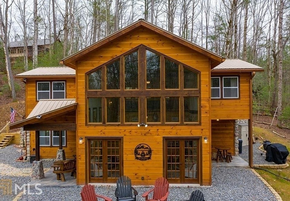 This spacious and very private 3 BR 3 BA cabin has lots of upgrades and is equipped for full-time living or multi-family vacation get-away. It comes completely furnished and ready for move-in or immediate rental. The large great room has an open concept kitchen/dining room. The first floor has an over-sized bedroom and bathroom. Upstairs is a split concept with a master bedroom and large bathroom at one end of the home, a loft with plenty of sitting area, a hall closet with washer/dryer in the middle and a guest bedroom/bathroom at the opposite end of the home. A very private wooded back porch offers endless hours of solitude and wildlife watching. Great outdoor cooking porch directly off the kitchen and a wonderful outdoor fire pit. Easy access and close to the front gate.