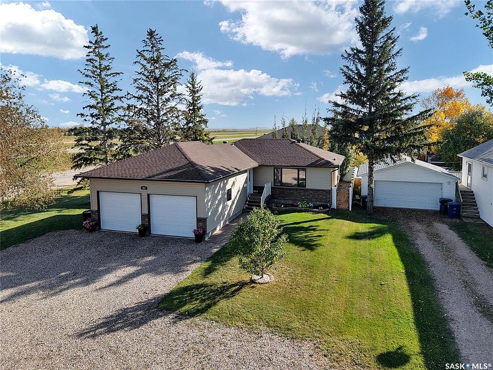 Located in a small, friendly town, this home provides the peace and quiet of a tight-knit community while still providing the essentials close by. This well-cared for 2 bedroom, 2 bathroom home offers the perfect blend of character and updates. Originally built in 1954 and moved on to a new foundation in 2011, it combines solid construction with modern convenience. The main level offers an updated and bright 4pc bathroom, open floor plan with beautiful hardwood floors that flow through the main living space, 2 bedrooms and a large living/kitchen area that hold space for all of your loved ones. The basement is open for development with your personal touch and has a 2nd bathroom that is near complete. Situated on a corner lot, this property features a double attached garage with 11' ceilings, rv parking and a low-maintenance back yard with deck and fire pit area. UPDATES to note - Newer exterior, windows, garage, foundation, electrical and furnace, some flooring.