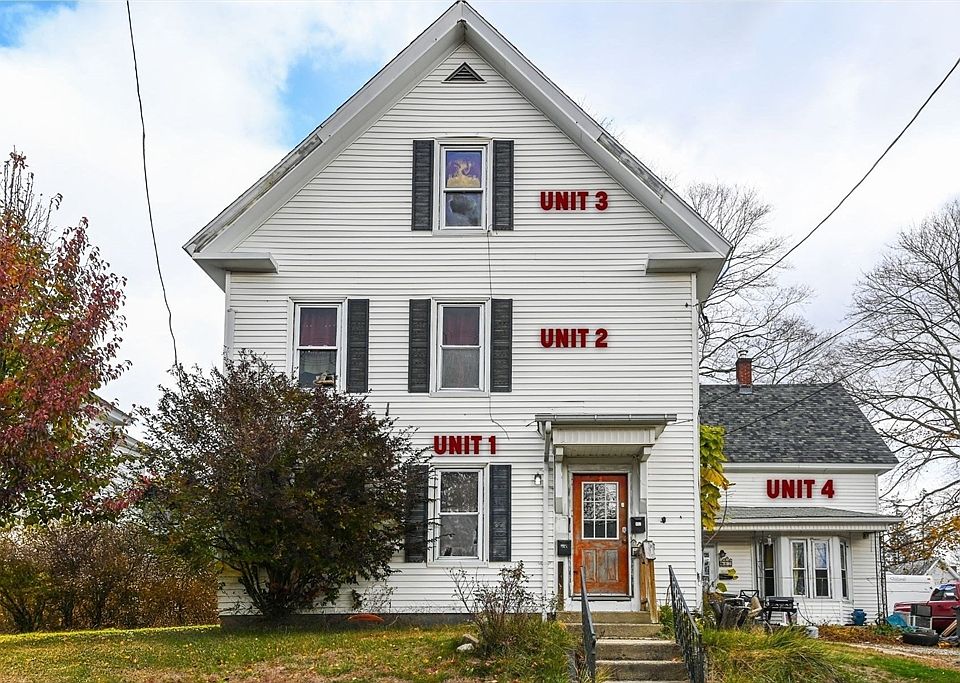 Ideal for investors or cash buyers! This 4-family home at 80 Maple Street in Gardner features three apartment units plus a separate townhouse-style unit—each offering 2 bedrooms and 1 bathroom. The property needs work and if looking to add value this would be it. First-floor unit and townhouse have separate FHA gas heating; second floor has a gas space heater, and third floor currently has no heat but plumbed for gas heater. Updates include Front Roof (3 +/- yrs), New exterior electric from street (5 +/- yrs.) motion lights and hardwired fire system (10 +/- yrs), Electric breaker boxes (10 +/- yrs.), gutted second floor of townhouse (15 +/- yrs), Replacement windows (20 +/- yrs.), three gas hot water heaters, vinyl siding, relined chimney and new furnace for townhouse (20 +/- yrs.). Off-street parking is available. It is conveniently located near downtown. Great investment opportunity! Group Showings Preferred.