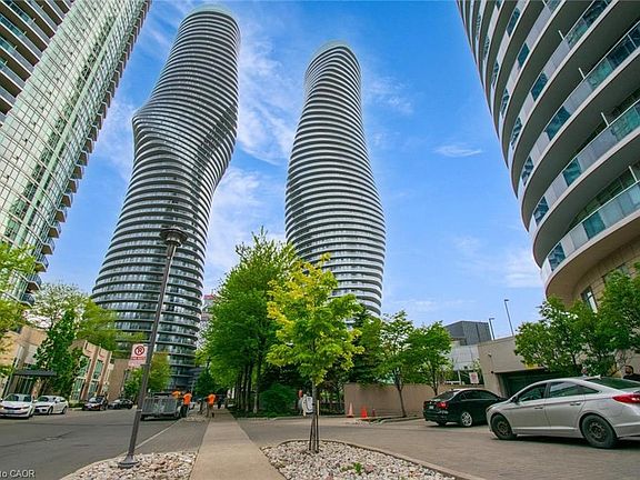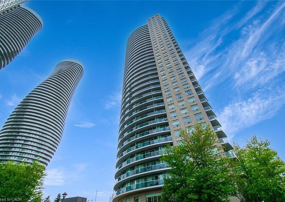 Step into this bright and airy 1-bedroom plus den, 2-bathroom suite in the sought-after Absolute Vision tower an iconic landmark in the heart of Mississauga. Located on the 12th floor with southwest exposure, this meticulously maintained unit offers stunning city views of downtown Mississauga from a full-length private balcony. The open-concept layout features 9-foot ceilings with elegant hardwood flooring, and a renovated modern kitchen equipped with granite countertops and stainless steel appliances. The spacious primary bedroom boasts a large closet and a 4-piece Ensuite bathroom. The den, enclosed with sliding doors and a dedicated closet, offers versatility as a second bedroom or private home office. The building recently completed interior renovations in 2023, as well as balcony upgrades and exterior air-sealing improvements in 2024, adding to its appeal. Residents enjoy access to the renowned Absolute Club with resort-style amenities including indoor/outdoor pools, two storied gym, indoor walking track, squash courts, basketball courts, sauna, theatre, gaming room and more. Situated just steps from Square One, City Hall, the Living Arts Centre, and the upcoming Hurontario LRT, this location offers unparalleled convenience and connectivity in the city's vibrant core. One Owned Parking Space, Locker, 30,000 SQ FT Absolute Club, 2-Storey Gym, Indoor Running Track, Indoor Pool & Outdoor Pool, Billiards, Party Room, Sauna, Games Room, Theatre Room, Squash Court, BBQ, Kids Playground, Car Wash Bay, 24-Hour Manned Gatehouse.