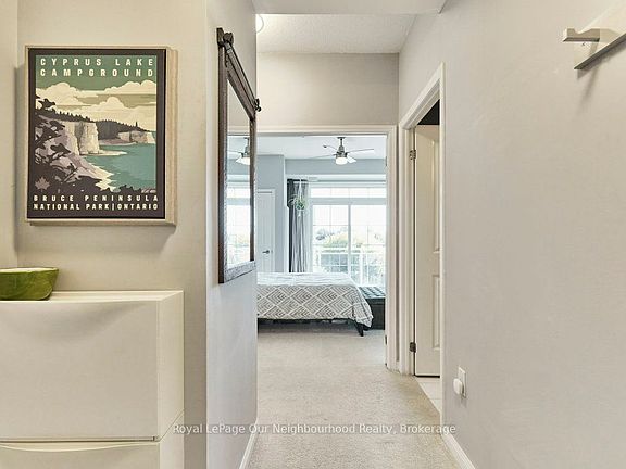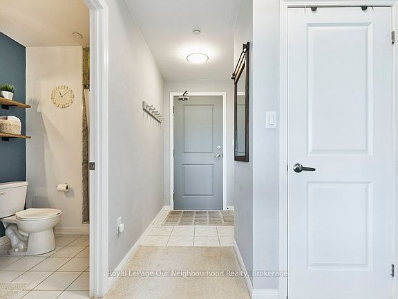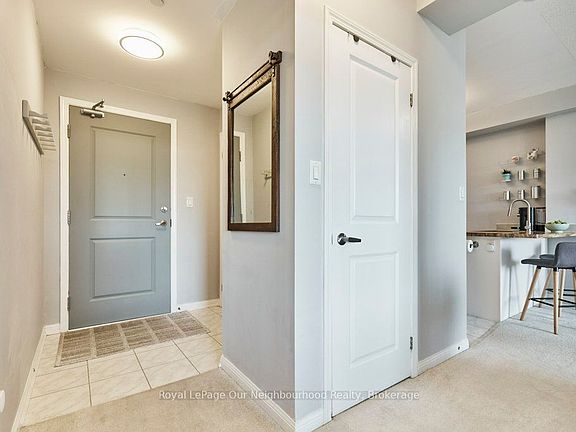 Welcome to your urban oasis! This beautifully maintained 1-bedroom, 1-bathroom condo is situated on the top floor and offers the perfect blend of comfort, style, and convenience. Located in a desirable, well-managed building this bright and airy unit boasts a double balcony, rare in this building- ideal for unwinding after a long day, or entertaining guests under the stars. From the moment you enter, you're greeted by high ceilings and a flowing open-concept layout bathed in natural light. The gourmet kitchen is a chef's dream, featuring stainless steel appliances, stylish and contemporary butcher-block countertops, and sleek, custom cabinetry. The generously sized primary bedroom is a serene sanctuary, complete with a spacious double closet and private balcony access- perfect for sipping your morning espresso or enjoying an evening glass of wine after a long day at the office. Step into the spa-inspired 3-piece bathroom, where elegance meet functionality. Thoughtfully redesigned with custom upgraded vanity, this space offers abundant storage while elevating the overall aesthetic with clean lines and high-end finishes. The unit has also just been freshly painted in a timeless and neutral colour palette that will stay trendy for years to come. Nothing to do but bring your toothbrush! Additional features include in-suite laundry, central climate control, and one owner parking spots steps from the main entrance. Residents enjoy access to first-class amenities including a gym, ample visitor parking, courtyard playground, as well as a party room and library, offering the ultimate convenience and luxury. Located just minutes from schools, shops, restaurants, public transit, and parks, this home truly has it all. Come see it and fall in love today!