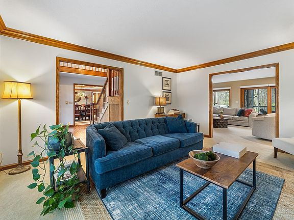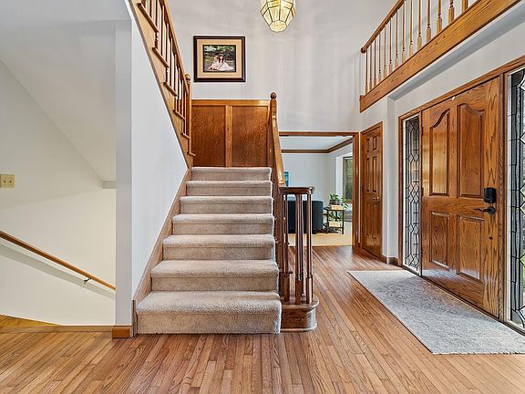 Beautiful home with numerous updates. The home sits on 2.5 acres with a private tree lined backyard. The great room has a gas/wood burning fireplace, bar area and opens to the updated kitchen. The Zinn kitchen has an updated island, new Bosch dishwasher, new tile backsplash, an abundance of cabinets with pull outs, 2 ovens, views of the well landscaped backyard. The office offers built-ins. Laundry room is spacious, the new washer/dryer are negotiable. The 2nd floor offers 4 bedrooms or rooms to use to fit your needs. The primary bedroom updates include a stand-alone tub, shower, toilet, tile flooring. The bedroom opens to a private balcony. The lower level is nicely finished with bedroom, full bath, built-ins, rec room, lots of storage. Enjoy the grounds with salt water pool, automatic pool cover, multi-level decks, fence. The pool heater is new.
