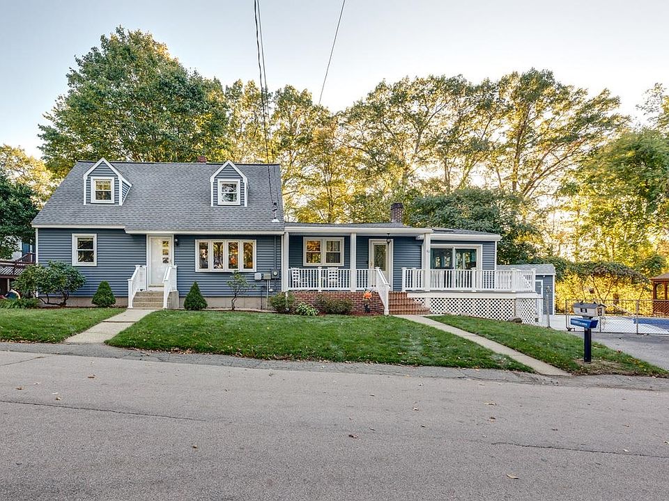 Check out this Expansive Dormered Cape with 2500 sq ft of living space! Nestled in a quaint neighborhood, this home has so much to offer. From an open concept UPDATED Kitchen including a box window with SS appliances, granite counters, tiled backsplash and gorgeous bamboo hardwood floors that flow into a Dining Room with lots of cabinet space to a Large Living Room featuring incredible natural light from the skylights and a sliding door that leads to a wrap around deck with a cat walk which adorns trex decking. Lets not forget the Cathedral Ceiling with beautiful exposed beams that lead into a Heated 4 season Sun room overlooking the sparkling inground swimming pool with new vinyl liner. The first floor has a primary suite with a stand up shower and adequate sized closet. There is also a full sized bath down the hall too! Two additional bedrooms upstairs have new carpet and share a convenient half bath. Plenty more area to be used with an additional bedroom in the basement, game room, storage room and laundry/utility room. The walk out into the fenced in back yard makes easy access to the pool and 3 sheds....and a screened Gazebo that makes for a great place to chill and hang with family and friends. The leaves may be falling, but the grass is staying a very lush green thanks to an irrigation system. Mature landscaping makes the yard very appealing to the eye and soul. The side yard has an open space currently used for enjoyment, but may be a candidate for another lot...hmmm.
