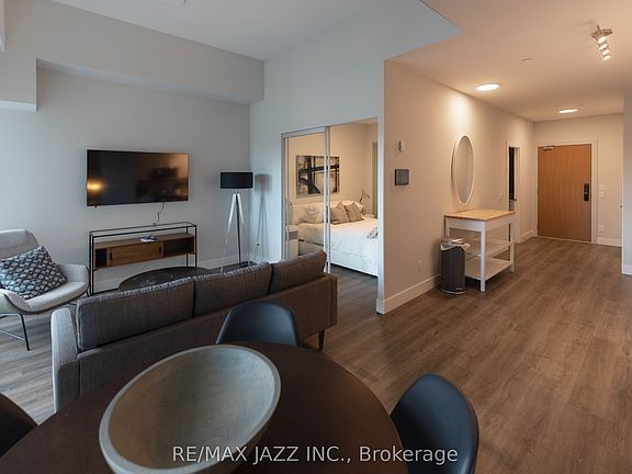 Meet the New Bond. 80 Bond is a new luxury accessible building in downtown Oshawa. Unit 1601 is an incredibly finished One Bedroom Plus Den space with Northern Exposure and Juliette Balcony, Open Concept, Great Den/Office Space for work from home . Your suite will have it all: smart floor-to-ceiling windows, individually controlled HVAC system, hi-speed internet ($50 per month), stainless steel appliances (including dishwasher and microwave), in-suite washer and dryer, 9 feet ceiling, 24-hour security, underground parking ($150 per month), lockers, and onsite Property management team. Amenities include Gym with showers, Party Room, Terrace, Dog Wash and Business center. Pet friendly. 80 Bond features a spacious double height lobby enclosed in glass offering that creates an impressive entrance with security desk and ample seating, as well as a lobby lounge separated by a double-sided fireplace that is ideal for informal gatherings and a great place to hang out with your favourite book. Do it all in 80 Bonds 3,100 sq.ft. ground floor Gym featuring state-of-the-art facilities and equipment, an expansive mirror wall, fantastic street view, televisions to keep you entertained and more. Events big or small fit in nicely in this beautiful double height space featuring a double-sided fireplace, kitchen/bar area and plenty of room for all your friends and family. The Lounge is also a great place to enjoy a little quiet time while cozying up to the fireplace. Just off the Lounge & Party Room, laze in the sun, take in the view or fire up the bbq and cook up a meal on the 5th floor Terrace, a great place to entertain or relax solo or with friends; plenty of room, lots of seating options and 2 bbqs for convenience. And if Fido needs a bath! Conveniently located on the ground floor near the buildings secondary entrance, you can quickly clean up the pup before those muddy paws get anywhere near your front door. (Photos may not be of exact unit)