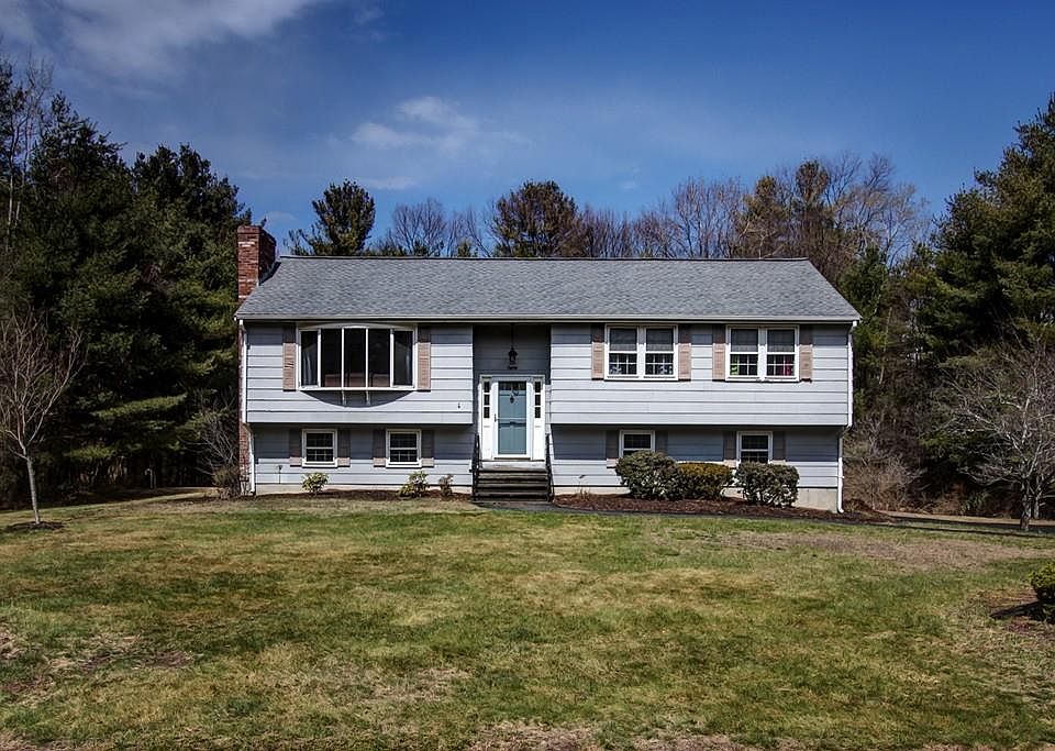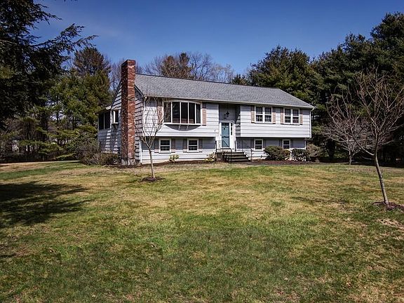 Opportunity awaits in this oversized split level home, located on an acre plus lot in a neighborhood setting of Holliston. This home has hardwood flooring on most of the main level, central air conditioning, new roof, two fireplaces and a 2 car garage. The fireplaced living room is very spacious, with a large bay window; open kitchen/dining area with solid oak cabinets, tiled floor and stainless steel appliances. The master bedroom with hardwood floors is quite large, fitting a king sized bed and dressers, and has its own full bath. The 2 other bedrooms are generously sized, with hardwood flooring as well. The lower level offers a family room with a fireplace, and a large laundry room. Spacious two tiered deck overlooks the large, level lot, great for backyard games & play. Wonderful location, close to the Hopkinton line, Audubon, Pinecrest Golf Course and high school. Home does need work & updating, but is a very solid home. Holliston schools are ranked #14 by Boston Magazine