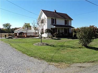 COUNTRY LIVING! Minutes to I79. Home has newer roof, electric & windows! New carpeting on 1st flr. Kitchen has been totally remodeled which includes mudroom & closets. Just finished huge side deck leads to 2 car garage with new doors & cement floor. Two acres that is all useable. Professionally landscaped with berry bushes, fruit trees & gardens with creek running thru. Small barn would be suitable for horses! Low taxes. You don't need to look any futher! This IS the right home for you!