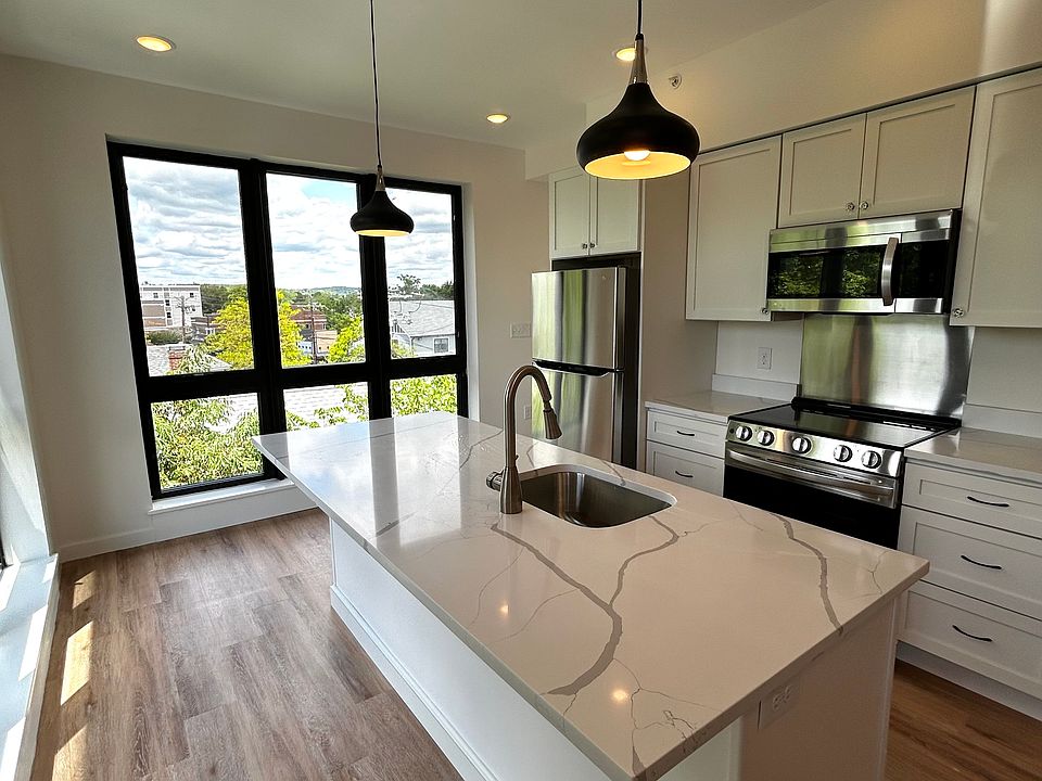 Discover modern living in this stunning 1 bedroom, 1 bath apartment. This newly constructed apartment offers a spacious open floor plan, with plenty of storage to fit your needs! You won't be disappointed with lighting or views, with plenty of windows surrounding, you can feel at home. Window isn't enough, step outside to your furnished deck overlooking Boston. The building offers off-street parking with electric charging stations and an elevator for convenience. A washer and dryer is located in the unit. Convenience doesn't just describe the design of the building, but its location. There are plenty of nearby convenience stores, walking trails, restaurants, and easy access to highway/train station. There is also bike storage and a gym on the bottom floor.