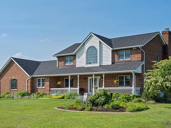 Close to I-70, nestled in a serene 10 acre country setting, this custom-built 3 or 4 bedroom home offers an exceptional blend of luxury, comfort & outdoor living. Room to ride ATV’s or your horses! Plus a tandem detached garage, driving covered parking spaces to 8. Upon entering, notice the thoughtful design & high-end finishes. The main level has a formal dining room, sunken living room, remodeled laundry, & inviting family room with custom gas fireplace. The kitchen features rich wood cabinetry, granite countertops & eat-in area. Sliding glass doors open to a resort-style backyard. Upstairs, find three spacious bedrooms, including the owner's suite with spa-inspired bath, tiled walk-in shower, custom cabinetry, & Closet by Design system. Fourth bedroom options are located on the lower level where you’ll find fitness & game rooms. Outdoor living is spectacular with a 16x40’ in-ground pool, spa, pool house, & outdoor kitchen. This outstanding property is minutes to everything!