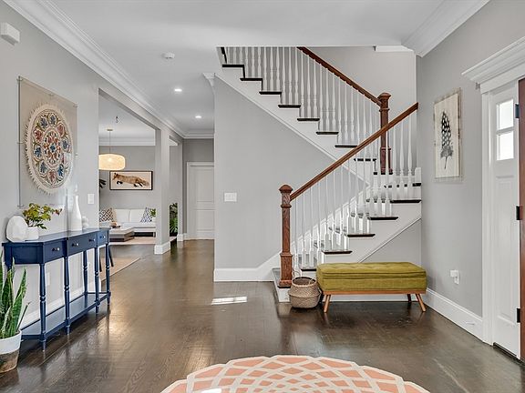 Elegant c. 2017 Follen Hill home. Set on over one-third acre with landscaping and terraced yards, this 5-bedroom home offers modern construction living in Lexington. The front porch enters into a foyer, gas-fireplaced family room, and quartz/stainless kitchen with island, eat-in area, pantry, and French doors to the rear patio. A semi-open dining and living room area, office with custom shelving, and bedroom suite complete the first floor. The second floor features laundry, bedroom with en-suite bathroom, two additional bedrooms with a jack-and-jill bathroom, and large primary suite with walk-in closet and marble-tiled bathroom. Playroom and storage on the top floor. Exercise room, mudroom, and half-bathroom on the lower level. East Lexington location with conservation areas and the Bowman School within walking distance, and convenient access to Route 2 to Route 128 or Cambridge and Boston. Two-car garage enters directly into finished basement.