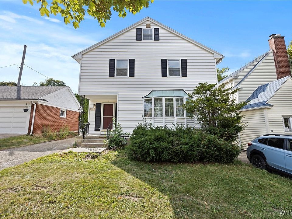 Welcome to 80 Capen! This sprawling two story colonial home is located just minutes away from all the shops, restaurants, grocery, and schools Amherst has to offer, not to mention its proximity to UB South! Enter the living room, bright with natural light, and into the formal dining room, where original hardwood floors lead into the kitchen. The kitchen is large enough for a breakfast table, has plenty of cabinet space, and the much desired 1st floor laundry! Off the kitchen is the family room (or first floor additional bedroom), perfect for cozy evenings or entertaining guests. Powder room completes the first floor. Upstairs, are all four bedrooms, full bathroom, and a primary bedroom with en suite bath and walk-in closet. Full attic that can be finished if desired. Outside is a large backyard, with concrete patio, garden shed, and a row of trees giving peace and tranquility. Detached 2 car garage for plenty of storage. Investors/folks looking for in-law suite: the basement is finished, includes a beautiful full bath with jacuzzi tub and floor to ceiling tile stand up shower, small kitchen, egress window (recently installed), and gives the potential for additional rental income. New boiler and HW tank recently installed. (Square footage greater than reflected on tax record per remeasurement.)