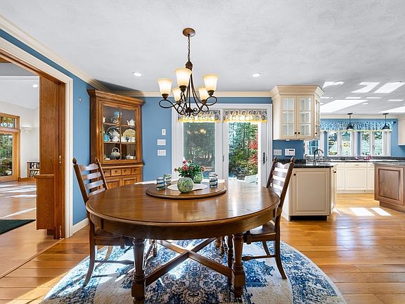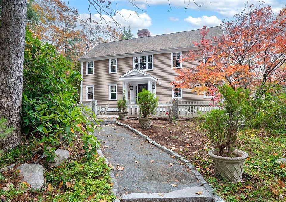 Discover privacy and tranquility at this stately 4-bedroom colonial nestled on a quiet cul-de-sac street in desirable Sheldonville. Lovingly maintained and thoughtfully updated by only one family, this home offers timeless charm and modern convenience. Step inside to find a spacious layout ideal for entertaining, featuring an updated kitchen, a cozy library, a sun-drenched sunroom, and a 3-car garage. Upstairs offers four large bedrooms including a primary suite, plus a finished third floor with flexible space ideal for a playroom, home office, or studio. The backyard is a private oasis, complete with walking paths and lush gardens that bloom from spring to fall. Outdoor living is elevated with a sparkling heated pool, a heated pool house, a charming gazebo, lofted barn, and large covered porch with massive stone fireplace. Additional highlights include a whole-house generator and exceptional storage throughout. A rare find offering true tranquility, privacy and timeless charm.