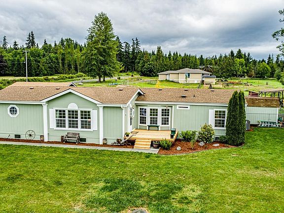 Price improvement!! Now priced 45K below a recent appraisal!! Move in ready mini farm and dream home between Port Angeles and Sequim! 2210 sq. foot, 3 bedroom, 2 bath home with a 2 car garage is sitting on 6.29 fully fenced acres just waiting for you and your critters! Huge primary bedroom with on-suite, soaking tub, separate shower and two walk-in closets. The other 2 large bedrooms are on the opposite side of the home. Entertain on the huge covered, south facing patio or sit in the new, covered hot tub.