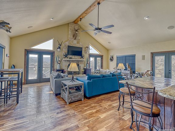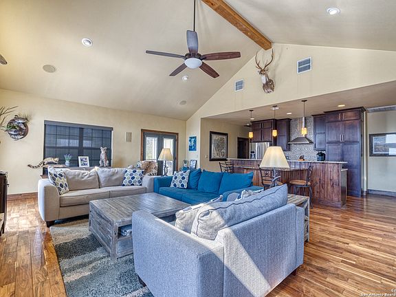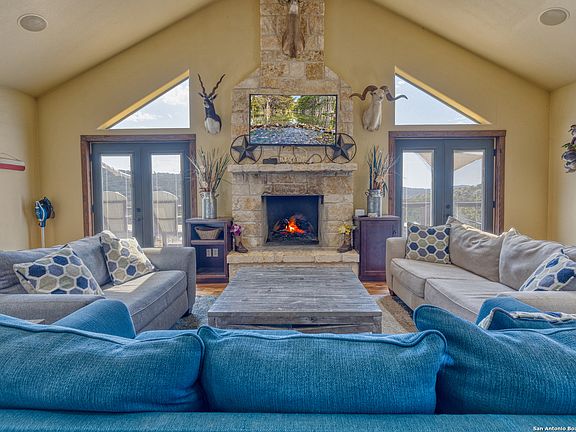 "3 Sheets" is a one of a kind private get-away in beautiful Concan. This 5 bedroom 3 bath home sits on 3.69 acres at the back of Canyon Oaks subdivision right off River Road and will be turn-key, fully furnished. The high-end finishes include stainless steel appliances, granite countertops, a stone fireplace, and beautiful wood flooring. The home is open concept with many windows to enjoy the stunning views. There is an abundance of outdoor living space with plenty of very nice seating, tables, and a television. This home has never been in the rental pool, but nightly rentals are allowed in the subdivision. Owners will enjoy a private river park located a short drive from the home.