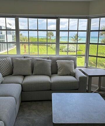 Stunning ocean views from this second floor corner condo. Freshly painted, new furnishings, new carpeting, fully equipped for a fabulous winter stay in Florida. King in Master, Queen murphy bed in guest, private beach walk. More photos coming soon. A must see.