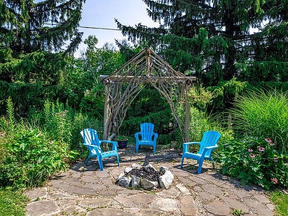 Tucked away on a quiet cul-de-sac, this exceptional 1/2 acre property offers a private oasis in the charming village of Schomberg. Surrounded by mature trees and magical gardens, this side-split home provides a serene escape with an incredible sense of privacy. Arbors lead to the perfect fire-pit for evening conversation and star-gazing. An apple tree and swing bring you back to earlier days. This home has been updated throughout the years and includes a more open floor plan in the common areas. The lower level includes a second kitchen and fireplace. Every window has a view to the garden as the sun moves around the property. A pleasant walk from your doorstep, you'll find yourself on Main Street, where the best of village life awaits. Enjoy a leisurely morning at one of the local coffee shops, grab a bite at a delightful restaurant, and soak in the small-town charm that makes this community so special. This unique property seamlessly blends the tranquility of a country retreat with the convenience of village amenities. Its the perfect setting for those who desire peace and quiet without sacrificing easy access to a vibrant, welcoming community. Come discover the private haven that awaits you.