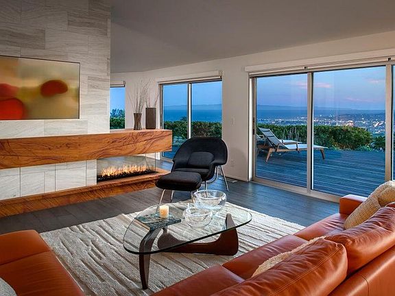 Offered unfurnished, available January 15, 2026 for year lease. Enjoy breathtaking panoramic views from this single-level home, nestled on a hill at the edge of Montecito overlooking Santa Barbara! This private Mid-Century Modern home was remodeled to perfection in 2012 by renowned architects Shubin & Donaldson. Relax on your 2,500 sq ft deck with panoramic ocean, city, harbor, and mountain views! Home features indoor/outdoor style living with 4 bedrooms, 4.5 bathrooms, huge living room with marble fireplace and retractable art wall. Large sliding glass doors lead to the wrap-around deck, for the quintessential Santa Barbara experience. Chef style gourmet kitchen with state-of-the-art appliances. Custom Slovenian oak flooring and Italian cabinetry. 2-car garage, LED lighting, and custom closets in every room. Live like you are permanently on vacation here!