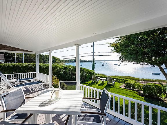 Enjoy panoramic water views and blazing sunsets from the spacious front porch of this masterly renovated beach house. There are water views from most rooms. The open floor plan, boasts a living room with gas fireplace, dining area and a deluxe kitchen with custom cabinetry, marble counters and top of the line appliances. An additional sitting area is off the kitchen, along with a half bath and laundry. Three bedrooms on the second floor, the master has a private bath with double sinks and glass enclosed tiled shower. White bead board wainscoting and gleaming hardwood floors throughout the house. This outstanding property is being offered turn-key fully furnished. Outdoor shower and storage shed.