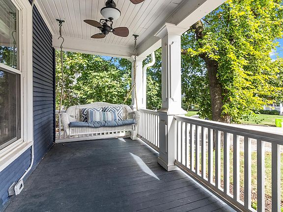 Completely updated top to bottom, this 3bed, 3bath home in the heart of Williams Bay has been thoughtfully remodeled. The welcoming front porch, with its swing & outdoor fan are perfect for summer days. Inside, refinished hardwood floors flow through cozy living and dining spaces filled with natural light. The dining area's built-ins add character, while the three-season porch invites quiet morning coffee. The chef's kitchen (2017) features Corian countertops, custom cabinets, a cooktop, dry bar, and fresh paint. The main level also includes a full bath & laundry, den/office, and bonus room that lead outside. Upstairs 3 cozy bedrooms await, with a spacious primary bed & primary bath (2023) offering heated floors and dual vanities. Outside enjoy a fenced in yard, and attached 2 car garage!