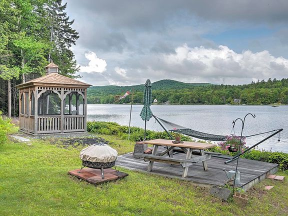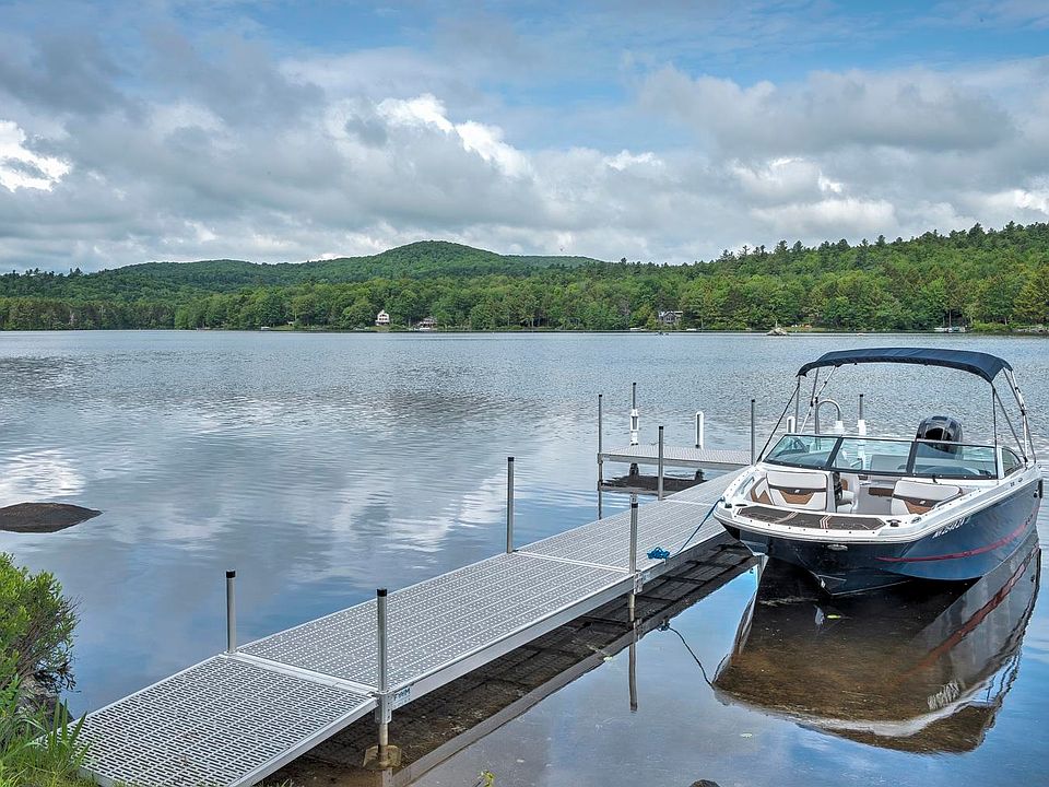 Live YR ROUND on the most magical spot on Highland Lake ( 712 Acres) in this PRISTINE CONDITION CONTEMPORARY STYLE HOME.. THIS IS A HIDDEN TREASURE! This one has it ALL! 170’ of beautiful water frontage, spectacular views of the LAKE, Sunsets, and Lovewell Mountain... Approx. 2500 SF of living space, 3 BD/2.5 BA. Large DOCK (Boat available for purchase), Screened in Gazebo near the water to enjoy the Loons, bald eagles, herons & the activity of the Lakeside Lifestyle while partaking in Happy Hour! Open concept 1st floor allows plenty of room for entertaining w/ a large deck overlooking the panoramic Lake/Mountain View. Kitchen features an 8' center island w/ seating, HICKORY cabinetry, Brand New SS appliances, under cabinet lighting, dual sliders to the deck, and large dining area/living area. The beautiful fireplace is the focal point... so you can Enjoy cuddling up & relaxing. The laundry room/Half Bath with utility sink and folding counter. First floor bedroom completes the main level of living. Wander upstairs where you will find floor to ceiling custom built bookshelves and the sweetest spot to grab a book and dive in to it! Primary En Suite has sitting area, walk in closet, slider to balcony for your morning coffee or glass of wine while you watch the sunset… Twin sink vanity in bath with gorgeous TILED walk in Shower w/seat. The third BD is spacious, as well as the FULL BATH-Ample Closet space too! It is an OASIS! Showings Begin: 06/15/2023