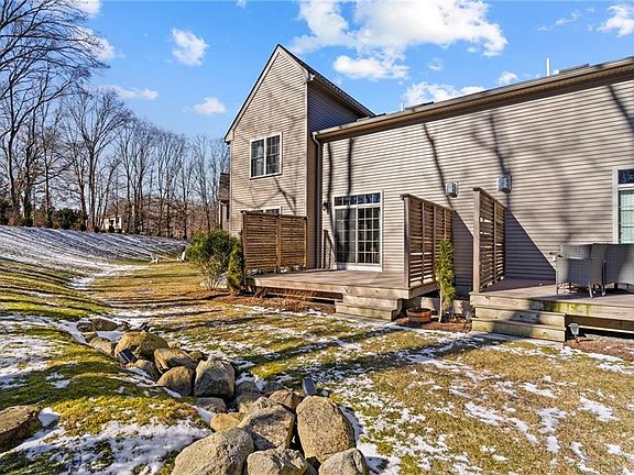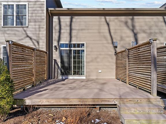 Experience luxurious, single-family-style living with the ease of condo life at Ridgewood Gardens in desirable Western Cranston. This rare corner unit townhome, one of only ten, offers a spacious and stunning design. The open-concept first floor, ideal for entertaining, flows seamlessly from the quartz-topped kitchen with a pantry, to the dining area, and the fireplaced living room, all enhanced by high-end light fixtures and skylights. Enjoy indoor/outdoor living on the oversized deck overlooking a private, wooded area. Upstairs, a versatile bonus space leads to two ensuite master suites with private baths and laundry. The partially finished basement includes an office area and ample closet space. A massive 2-car garage provides exceptional storage. This meticulously maintained, move-in ready home also features a Generac generator and an association that covers public water, snow removal, and insurance. In addition, the seller may consider including specific furniture items as part of an acceptable offer! Located on a quiet cul-de-sac, it's just minutes from Routes 37, 295, and 95. This is a truly exceptional opportunity in one of Cranston's most sought-after locations.