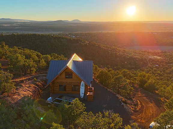 Experience refined mountain living at The Ridge, a handcrafted, 100% off-grid log retreat with panoramic views to the San Francisco Peaks. Perched across 3.5+ acres, this bespoke cabin blends artistry and sustainability with hickory cabinetry, porcelain tile, custom tile shower, and hand-peeled spruce logs. Solar power, propane heat, and a 1,500-gallon water system provide self-sufficiency in absolute comfort. Just minutes from Show Low and the Sitgreaves National Forest, this serene escape redefines elevated luxury living. Natural beauty, inside and out! Enjoy breathtaking sunrises and sunsets overlooking views all the way to the San Francisco Peaks from this custom-handcrafted, mountain-top retreat in the WhIte Mountains. Designed and built by a master craftsman, this newly constructed, 100% off-grid, bespoke log cabin has everything required for sustainable living in a serene, tranquil setting. When you drive up the private road to the top of the mountain, the cabin's hand-peeled spruce logs harvested in and transported from Northern Minnesota seem to glow from within. The
