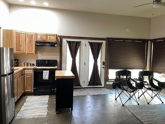 Ready to be at the best crappie lake in Oklahoma, with a turn-key cabin? Take a look at this modern, fully furnished, 600 sq ft, 1 bedroom, 1 bathroom cabin at Lake Eufaula for all of your fishing and recreation needs. Built in 2021 and located in Crowder, Ok on .25 acres MOL., in the Lake Eufaula Estates subdivision, you will be 5 minutes to the Crowder boat ramp, lake access via Corps land is less than one mile in the sub-division. It’s also 15 minutes south to McAlester and 15 minutes north to Eufaula proper. This immaculate cabin features a full kitchen with chopping block counters, island, refrigerator that stays with the cabin, brand new range, stackable washer / dryer hookups (washer and dryer not included) and stained concrete floor though the main living space. The home has two mini split heating and cooling systems. One in the bedroom and the other for the main areas, this allows you to heat and cool the areas at different temperatures. The bedroom features a large walk in closet, and carpeted floors. It will sleep 4 adults comfortably. Full alarm system, with cameras, stay with the home. Outside, we have added a matching custom painted, vented shipping container to hold all of your recreational toys. We added a complete gravel circle drive that goes around the cabin, to eliminate mowing etc. Great as a fishing cabin or a weekend getaway. No Restrictions on Air BnB etc. Agent is related to Seller.