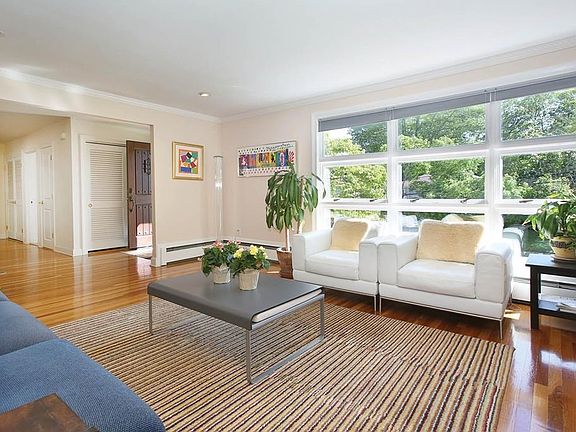 Stunning beautifully, light-filled and recently updated contemporary Ranch with an open concept floor plan on one of the south sides most desired streets. This bright spacious home is perfectly suited for easy, fun entertaining or quiet family time. The main living area features a large living room with a fireplace and an adjoining dining room. Wonderful spacious updated kitchen has loads of cabinets and counter space. There are three well-proportioned bedrooms on this level including a master with impressive private bathroom and great closets. A bonus room off the living room is perfect for a guest room or home office. The sunny three-season room overlooks the beautifully landscaped garden. Full finished lower level features include a 5th bedroom, a home office or exercise area and a bright family room/media room and laundry room. Two-car garage with direct-entry, central air conditioning. Minutes to Oak Hill Middle School and Newton South High School