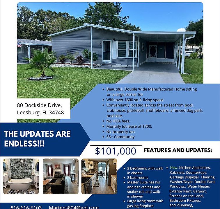 Double wide manufactured home. $700 monthly land lease. Move in ready. TAKING OFFERS!
