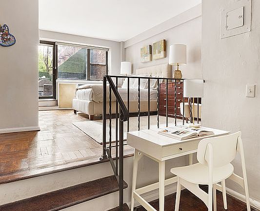 Residence 1F is a beautifully designed studio boasting a renovated kitchen and a charming patio for outdoor enjoyment. This quiet home has a spacious layout with hardwood floors, an inviting living area and bedroom, and a step-down dining area which can also function as a home office. The tastefully updated kitchen is equipped with stainless steel appliances, custom cabinetry, and slate floors. The classic bathroom has white subway tiles and a newly reglazed bathtub. The low monthly maintenance of $721.74 makes this a rare offering that will not last.