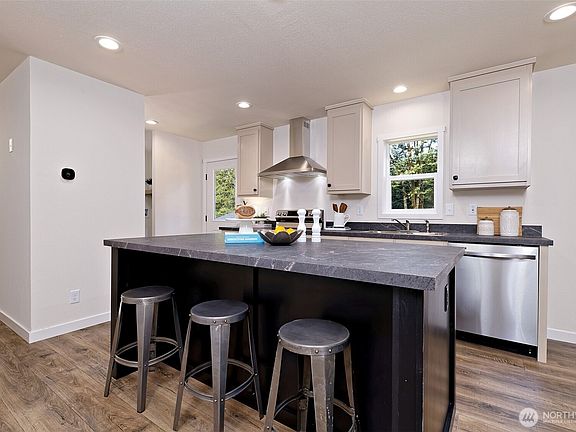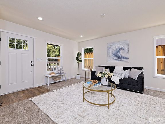 Discover this stunning 1367 sq ft home featuring 3 bedrooms, including a walk-in master, and 2 baths, ideal for comfortable living. Enjoy parking for up to 4 oversized vehicles and appreciate the beautifully landscaped yard with block walls, privacy wood fencing, and gravel walk paths. The side laundry deck offers easy grocery unloading, while a lush, hydroseeded new yard enhances the outdoor space. The big kitchen island, with seating for 3-4, is perfect for gatherings. Relax on the built-in covered front porch with Trex decking and lighted soffits. This home includes stainless steel appliances, recessed can lighting, and a laundry room with desk space. NEEM certification ensures energy efficiency in the Shorecrest HOA community.