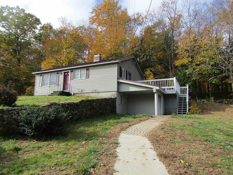 This miniature farm property is a wonderful place to live! The bright, open floor plan has been well maintained and updated. Open kitchen and dining room overlook the large front yard. Two bedrooms and full bathroom finish off the main level. A walkout basement features a family room with a cozy pellet stove capable of heating the whole house, the living room as well as a large laundry room with abundant storage and a convenient utility sink. The large deck has access to both the kitchen and the yard and is a great place to rest and enjoy the outdoors. The metal roof adds to the easy care of the property. The barn has electricity and in the center bay, a raised ceiling and reinforced 10 inch concrete floor that is capable of accommodating an automobile lift. Two fenced stalls with crushed stone and rubber matting are ideal for horses. A third smaller animal stall or kennel space and lots of storage complete the building. A large chicken coop near the barn as well. A second well close to the barn supplements the water supply and helps to make chores and gardening more convenient. Quiet neighborhood, close to shopping outdoor activities and hiking in the Monadnock region.