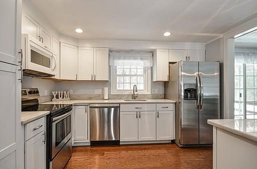 Picture perfect home, beautifully updated throughout and exudes a homey feel like no other. Sunlight gleams through the main level and throughout the open kitchen with new cabinetry, granite counters, large center island and new SS appliances. Entertain friends and family with ease as the space expands into the LD and DR areas. Slider opens to large deck overlooking the expansive, private and newly fenced-in backyard. Three bedrooms, all with hardwood floors also located on the main level along with an updated full bath. The lower level has been completely remodeled as well, perfect family room or play room! Half bath and laundry also located on the lower level with access to the oversized one car garage that provides for ample storage. New heating system and central air just installed in 2018! This beautiful home is located at the end of a dead-end cul-de-sac! Conveniently located close to Rte 20 and shopping, Nobscot Reservation, Garden in the Woods.This home is a gem, don't miss it!