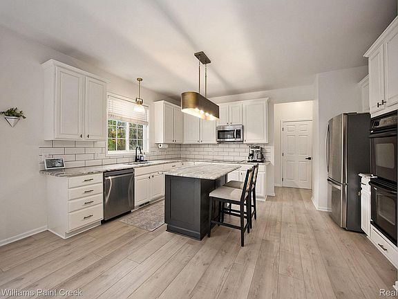 You’ll be smitten from the curb! This beauty offers all of the bells and whistles without any projects in sight! The spacious entryway leads into a light and open floor plan decorated with a tasteful eye in a fresh designer palette. Updated top to bottom including fresh paint and gorgeous new plank flooring throughout both levels! A spacious office flanks the entry. An open dining room is the perfect space for hosting dinner parties or raucous euchre tournaments with friends. The updated kitchen is gorgeous featuring beautiful cabinets, stunning marble counters, a generous island with bar seating, stainless steel appliances, including a new range & dishwasher. A generous eating area overlooks the private backyard and offers a door wall to the new deck. The generous great room has a lovely fireplace and the many windows offer stunning year-round views. Conveniently located off the garage are an updated lav and spacious laundry area. Upstairs, are four generous bedrooms including the primary which is a luxurious and tranquil space with a spa inspired bath, his and hers vanities, separate shower and soaking tub, and a spacious walk-in closet. The other bedrooms are beautifully decorated and share a large hall bath with dual sinks. The cherry on top is the professionally finished walk-out basement, designed with a space for everyone! A fabulous tv viewing area features a large wet bar. A home gym doubles as a hobby room, just steps from a beautiful third full bath. A doorwall leads to the lower level patio surrounded by new landscaping and beautiful woods. Please see the feature sheet for more, too many updates to list! Situated in the Shores of Long Lake, you’ll also enjoy exclusive resident beach access to all-sports Long Lake, just a few doors down, plus you’ll love walking to downtown Lake Orion through the sub without going out on Lapeer Rd! Lake Orion schools with Blanche Sims Elementary, Oakview Middle, and Lake Orion High. More features in docs!