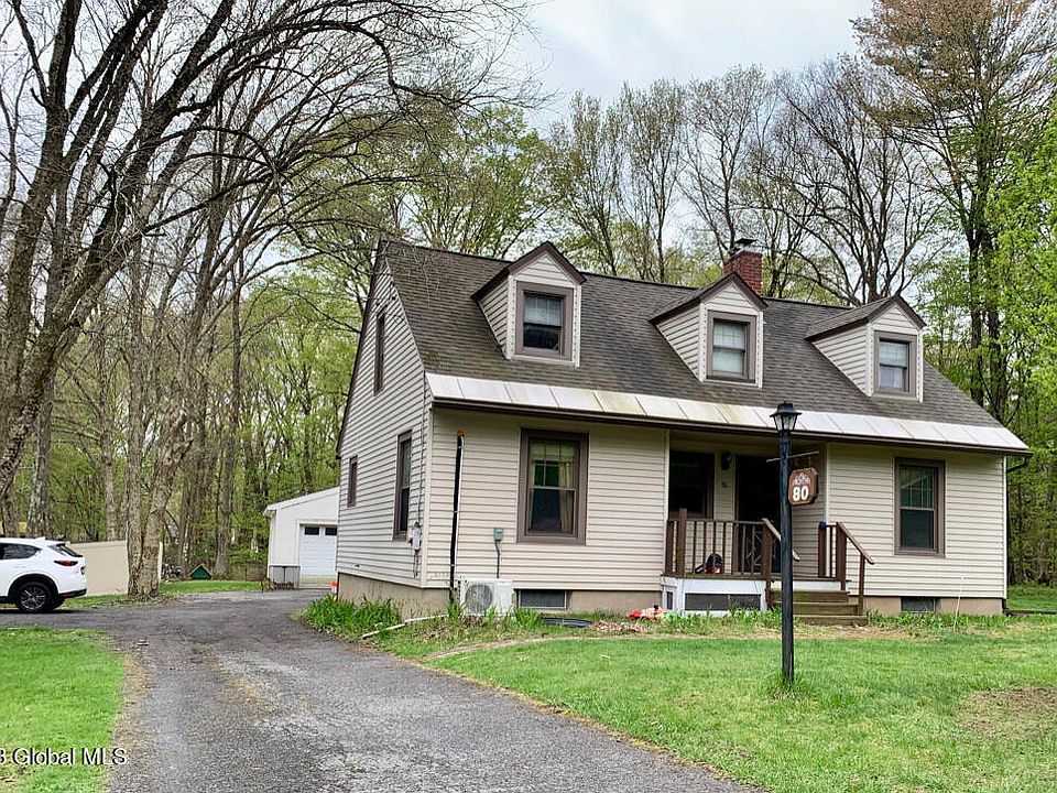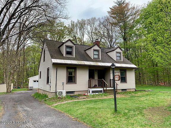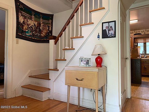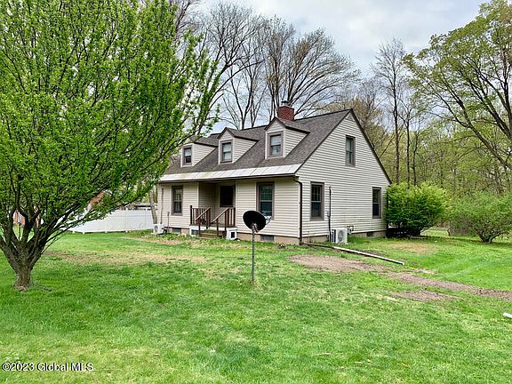 Open House Sunday April 30th 11-1! Conveniently located cape in the Niskayuna School District with large private yard. Welcoming foyer leads to spacious living room with pellet stove, dining room, eat in kitchen and a first level primary bedroom with full bath and laundry. Upstairs you will find two more spacious bedrooms and a full bath with shower redone in 2021. New boiler 2023, pellet stove 2021, chimneys lined 2020, roof is approximately 8 years old, two ductless inverters in 2022. Check out the stream right off your yard! Ready for your personal touch!