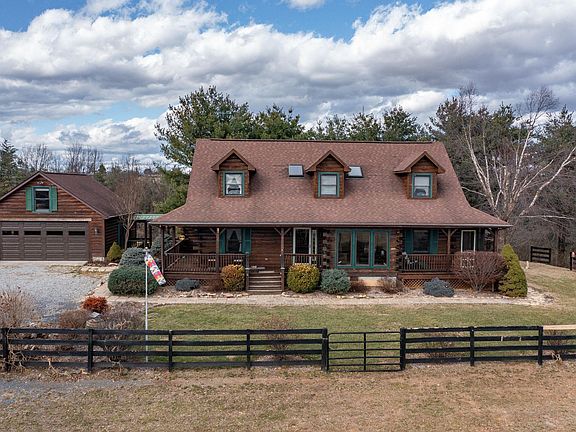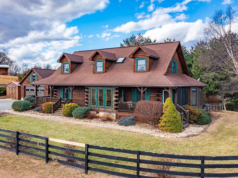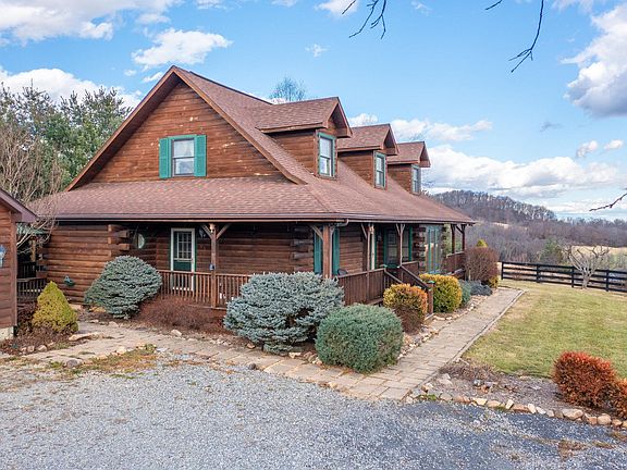 Enjoy extensive Blue Ridge Views from your front porch! Sturdy log home keeps you warm in winter and cool in summer! 2,350 sq ft; 3 bedrooms, 2.5 baths; Primary Bedroom on the 1st floor! Great Room features cozy wood stove and vaulted ceilings. Kitchen newly remodeled. Sit in front of the picture window and take in the magnificent view! Enjoy outdoor living on your front porch, spacious rear deck, and screened porch. 10.34 acres, currently fenced for thoroughbred horses. Bring your own 4-legged's: goats, sheep, alpacas, pups and pets. 3 run-in sheds. Spacious storage/hay building. Elegant landscaping offers bright colors spring, summer and autumn. You are welcome to customize this charming home and setting for your own specific enjoyment. Settlement to be AFTER May 1, 2023.