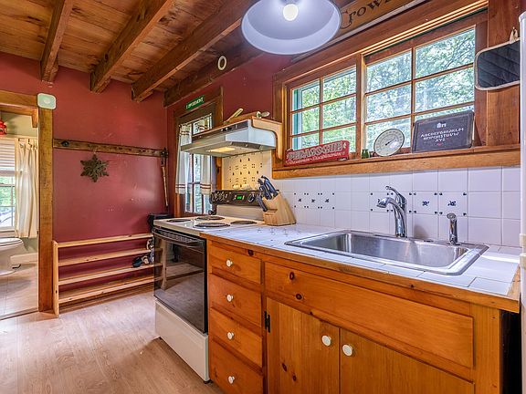 The Dunbar Schoolhouse was built for school district number 6 about 1865, and was converted in 1959 to what it is today, which is a very cozy cottage with an abundance of old school character from the wide plank coffee bar to the exposed rafters.  The main floor offers an open space concept with a country kitchen, the coffee bar, dining, plenty of living space to gather around the woodstove, 2 bathrooms, and washer/dryer.  The second level has a loft area currently used for sleeping, and two charming bedrooms. New roof, new septic tank, new bathroom, new woodstove, and some new electrical since seller's ownership.  The outside offers a hot tub deck and hook up! The schoolhouse- now ski house- is conveniently located between Stratton and Mount Snow Ski Resorts!