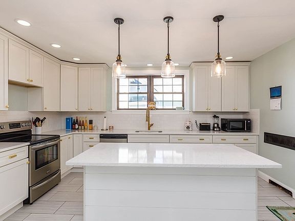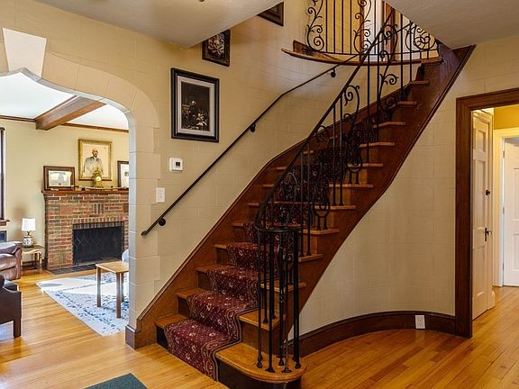 Completely renovated 2022. This stunning home offers all the modern conveniences today's buyers expect. Hardwood throughout except kitchen and baths. Every room in the house offers ample space starting with the gorgeous kitchen. The modern ceramic time plank flooring, oversized island with quartz counter top, pendant and recessed lighting and a large walk-in pantry. Step down into the fireplaced living room offering a cozy fireplace, beamed ceiling and space to create a room within a room. Curved staircase with decorative dome. Turret office, finished basement with oversized fireplace, walkout to driveway and two car garage. New high-end heating system, New roof 2022, New windows 2022, First floor laundry, walk up attic. This home offers a rough plumed bathroom in basement ready for your imagination.