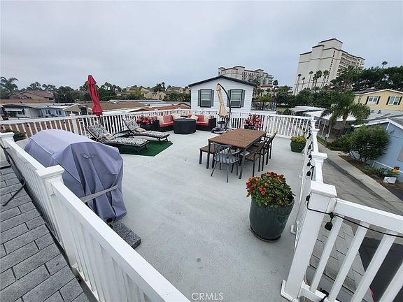 This is your little slice of paradise just waiting for you to relax and enjoy! Sit back on your roof top patio and enjoy the beautiful Southern California sun or a cozy fire at night.. The exclusive corner lot offers views of Pacific City and the sound of the waves. The beach is just out the park back gate and Pacific City mall is less than a block away featuring shops and restaurants. The famous Huntington Beach Pier is just ½ mile away along with Main Street filled with entertainment and foody places. The near places are endless from this location. Ride your bike along the flat bike path that stretches from Newport Beach to Sunset Beach. The home itself is 3 bedrooms and 2 bathrooms and features bamboo floors throughout with 9 foot ceilings and cove finishes on walls. The kitchen is a chef’s delight with granite and marble counters along with a built-in pot filler, a hot water ready tap and a built-in beverage fridge on the island. The home also features two decks to enjoy sitting either in the cozy wind and water proof cubby spot custom built or the 640 square foot rooftop deck perfect for entertaining and taking in the fireworks or annual air show. There is a dog yard with custom pet turf installed along with fencing and gates. The master bedroom is a retreat with a large bathroom and huge walk in closet. In the driveway is a “mini” garage for tools, bikes, surfboards, etc. There is an additional custom shed large enough to hold all the holiday bins and extra storage items. The exterior of the house was painted in February of 2025 and new custom rain gutters were installed at the same time. 3 bedroom 2 bathroom 1250 square feet 624 Square Foot Deck Large BBQ with Built-In Propane All Outdoor Furniture Included Bike garage Storage sheds Landscaped Dog Yard Fenced In New Exterior Paint New Gutters Beverage fridge in Island Walk-in closet A/C and Central Heating Tankless water heater Heated Pool and Hot Tub Gym and Clubhouse 2 Car Driveway (bonus at the beach) Beach is less than 5 minutes away from Downtown Main Street or to Pier is less than10 minutes away from Pacific City Mall across the street Best Seats At Home For 4th of July Fireworks and the annual Airshow