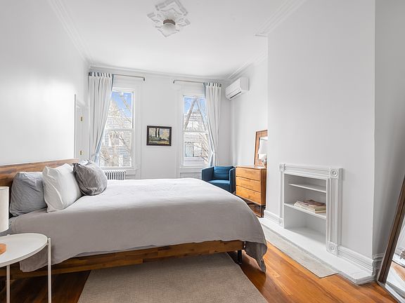 Furnished only. Avaialable December 1st. This top floor apartment in a two unit townhouse is located on one of the most bucolic streets in Greenpoint. An oversized one bedroom (approx 968SF) with home office it boasts fantastic light, tree top views and a one block walk to the subway and two block walk to the East River Ferry. Hard wood floors, air conditioning, a separate kitchen and high ceilings all combine to make this a serene and spacious apartment. Washer/dryer in unit. Available immediately. Fully furnished and fully equipped kitchen. No pets, sorry. 6 month minimum lease term. Owner/broker.
