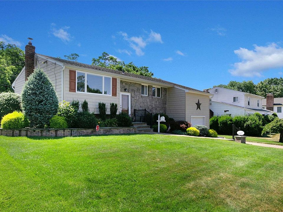 Custom built wideline Hi Ranch situated on quiet mid-block in Lenox Hills area, Inc. Village, features great curb appeal w/ fieldstone & newer vinyl sided exterior, brand new brick paver driveway, walkway, stoop & steps, brick & stone planters, custom landscaping. EIK w/ solid wood cabinets, granite countertops, stainless steel appliances & sliding doors to deck, 4 BRS, 2.5 Baths, MBR w/ fbth & large WIC. 1st floor large Family Rm/Great Rm. CAC, all Andersen windows, verticals, interior raised panel doors, brand new gas heating system & separate HW heater, 200-amp electric, alarm system. Oversized, park-like, huge privately fenced backyard, Trex deck, shed, IGS, Northside Elem. Close to town, shopping & RR. Close to Bethpage State Park & Golf Course., Additional information: Appearance:mint